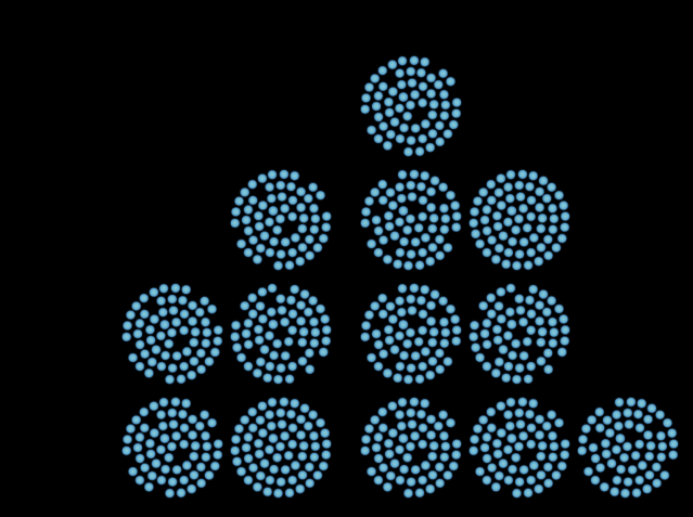 The collection of dots on the left represents the hour, and those on the right represent the minutes in multiples of five.